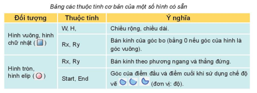 Dựa vào Bảng các thuộc tính cơ bản của một số hình có sẵn để tìm cách vẽ