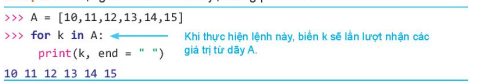 - Có thể duyệt nhanh từng phần tử của danh sách bằng toán tử in và lệnh for mà không cần sử dụng range