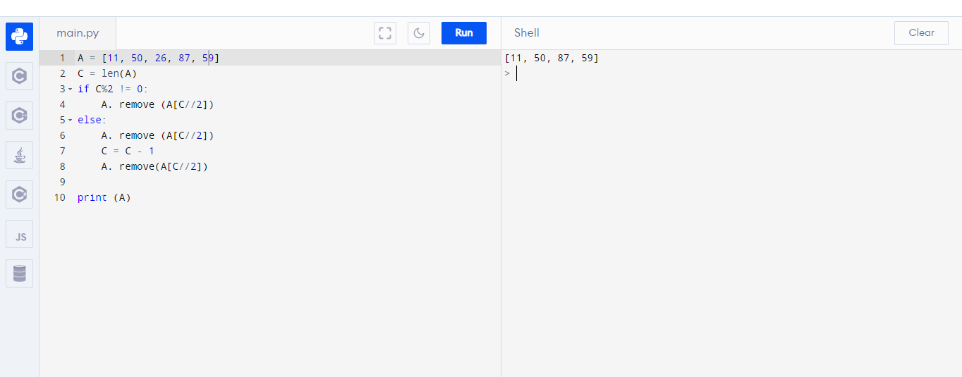 - Xóa đi hai phần tử ở chính giữa của dãy nếu số phần tử là số chẵn.
