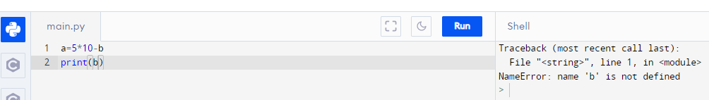 2. Ví dụ về một chương trình khi chạy sinh mã lỗi NameError.
