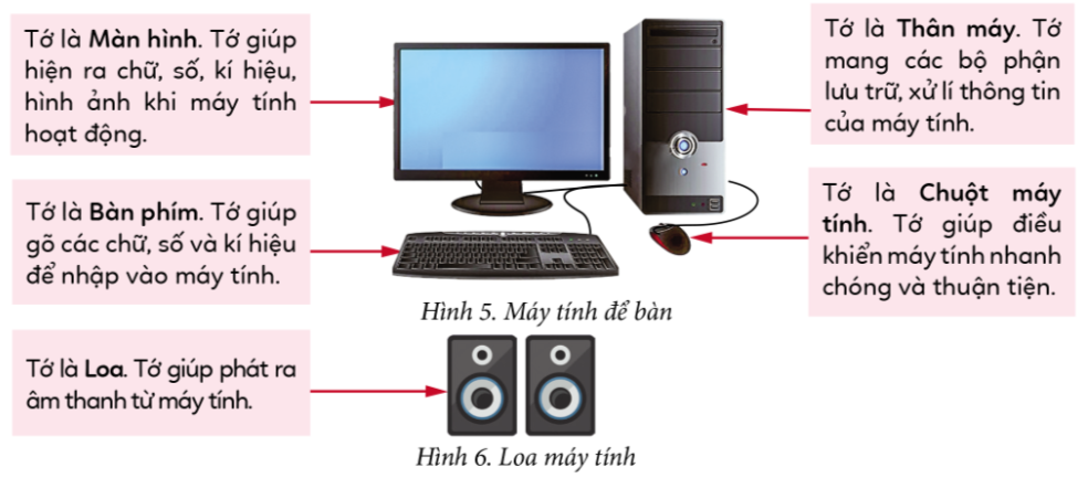 Hoạt động Quan sát các Hình 5 và 6, cho biết máy tính có những thành phần nào và chức năng của chúng là gì?