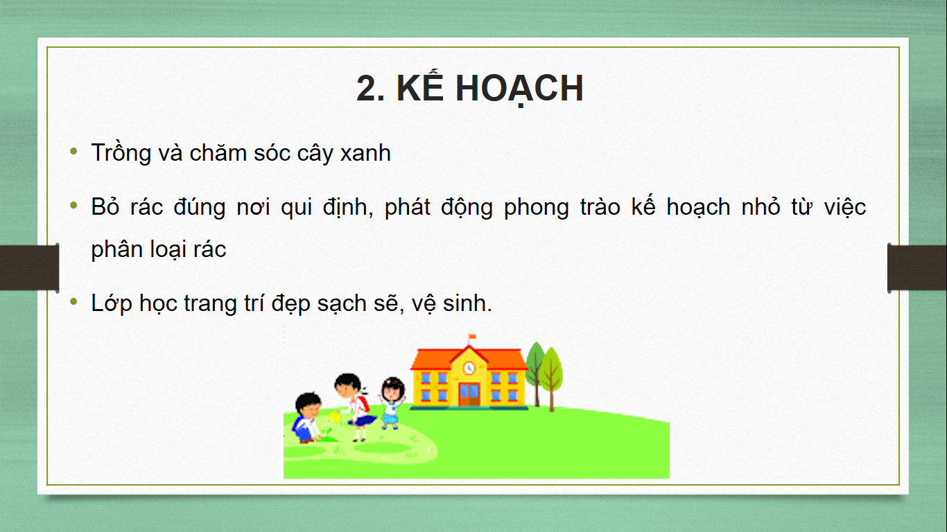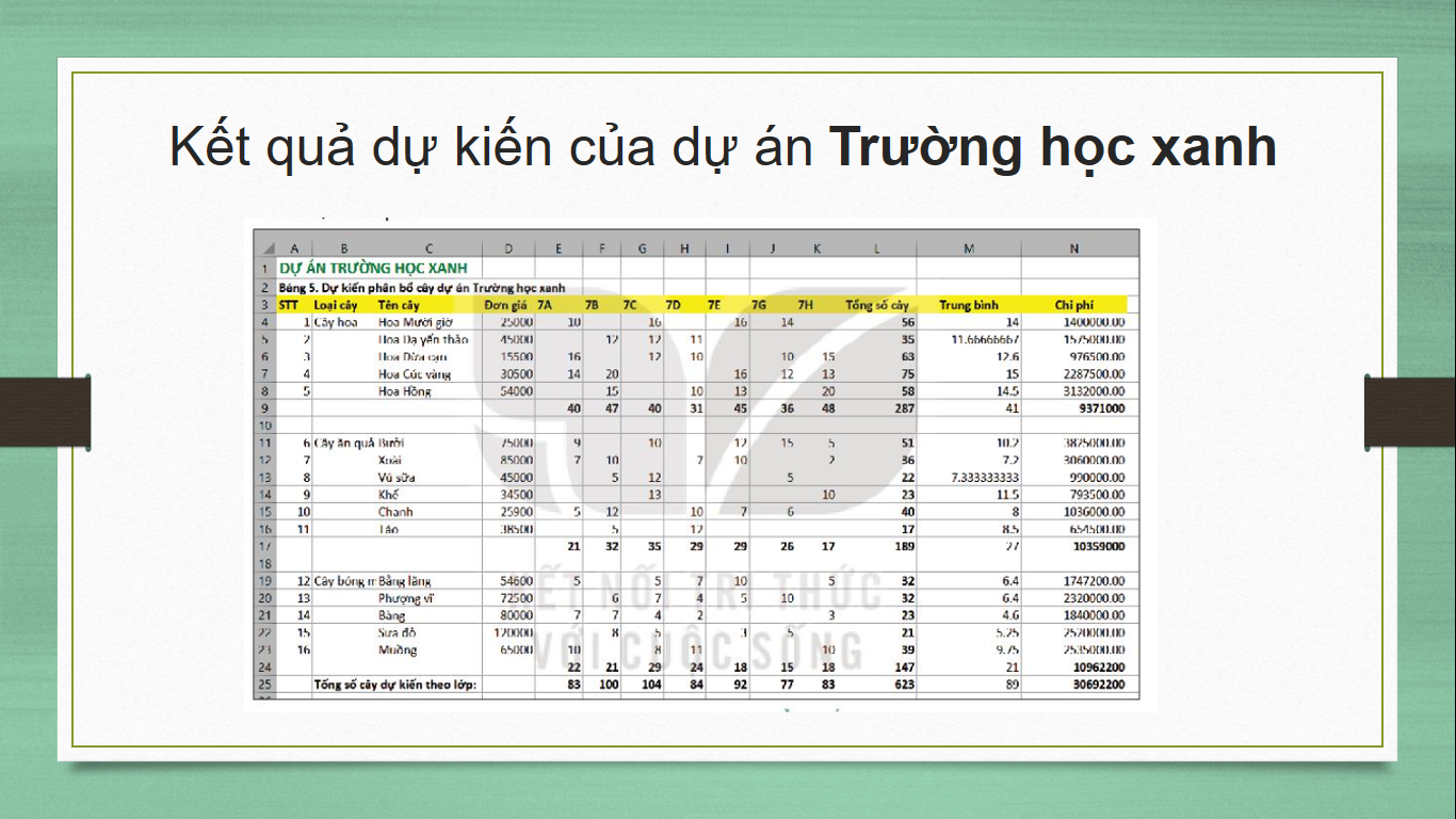 2. Em hãy bổ sung kết quả tính toán của dự án Trường học xanh đã làm trong phần mềm tính toán vào bài trình chiếu (có thể ở trang Kết quả dự kiến)
