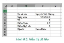 Em hãy quan sát kĩ hơn các ô và vùng trên trang tính. Xác định cách di chuyển con trỏ trên trang tính thông qua ô hiện thời. Xác định cách phần mềm đánh địa chỉ các ô và vùng dữ liệu. Trong Hình 6.2, ô ghi tên học sinh "Bùi Lê Đình Anh" được xác định như thế nào?