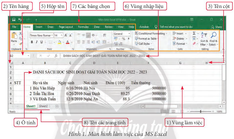 Mở tệp bảng tính DSHS_doat_giai_toan.xlsx như Hình 1 (giáo viên cung cấp).