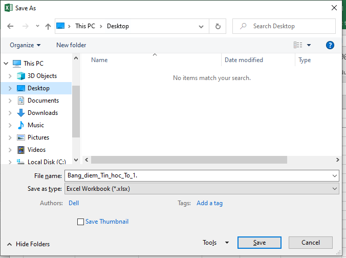 c) Lưu lại bảng tính với tên tệp: Bang_diem_Tin_hoc_To_1.