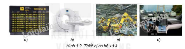 1. Em hãy ghép mỗi cụm từ ô tô lái tự động, máy chụp cắt lớp, bảng điện tử, robot lắp ráp với một thiết bị có gắn bộ xử lí trong Hình 1.2
