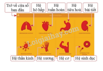 - Tìm hiểu hệ giải phẫu người: Nháy chuột vào cơ quan muốn tìm hiểu