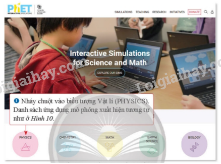 - PhET giúp cung cấp miễn phí tài nguyên giáo dục trực quan, sinh động về Vật lí, Hóa học, Sinh học, Khoa học Trái Đất và Toán học