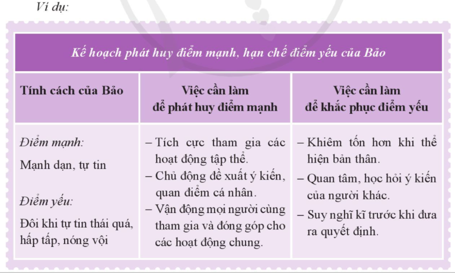 2. Thường xuyên thực hiện những hành động, việc làm cụ thể để phát huy điểm mạnh, hạn chế điểm yếu trong tính cách của bản thân.