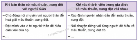 Chia sẻ về những tình huống em đã tham gia hóa giải mâu thuẫn, xung đột trong gia đình.