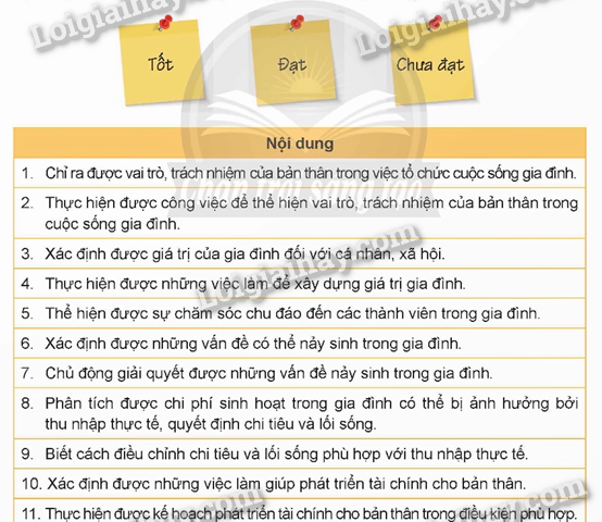 HS tự đánh giá các mức độ mình đạt được trong việc thực hiện các mục tiêu của chủ đề theo ba mức độ Tốt/ Đạt/ Chưa đạt.