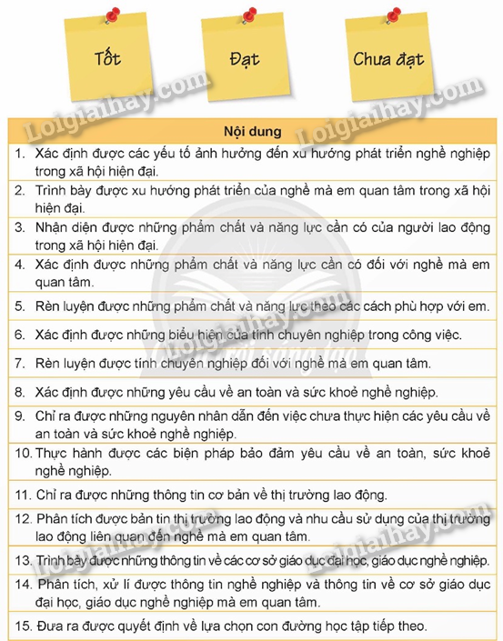 HS tự đánh giá các mức độ mình đạt được trong việc thực hiện các mục tiêu của chủ đề theo ba mức độ Tốt/ Đạt/ Chưa đạt.