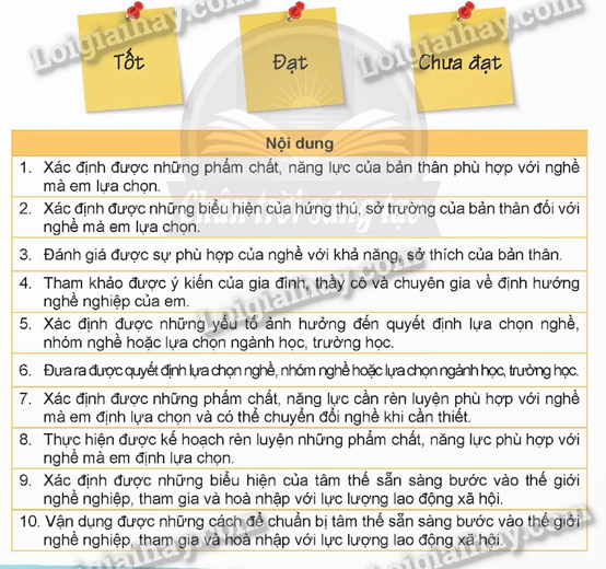 HS tự đánh giá các mức độ mình đạt được trong việc thực hiện các mục tiêu của chủ đề.
