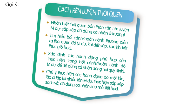 * Trao đổi cách rèn luyện thói quen ngăn nắp, gọn gàng, sạch sẽ.