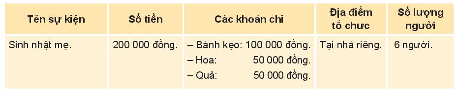 - Cách chi tiêu cho những sự kiện đó: học sinh tự thực hiện