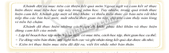 - Cam kết mà Khánh đã đề ra: Cải thiện môn ngoại ngữ và thực hiện được mục tiêu học tập này trong năm học.