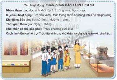 Phương pháp giải: Dựa vào gợi ý, tự lập kế hoạch và chia sẻ thảo luận với bạn bè về kế hoạch giáo dục truyền thống và phát triển cộng đồng ở địa phương.