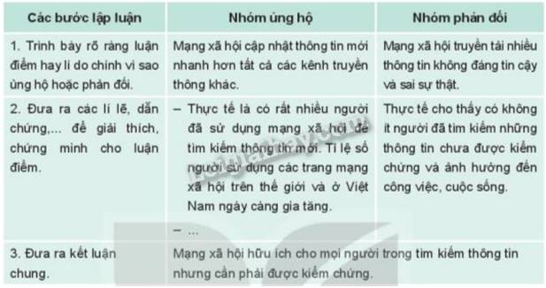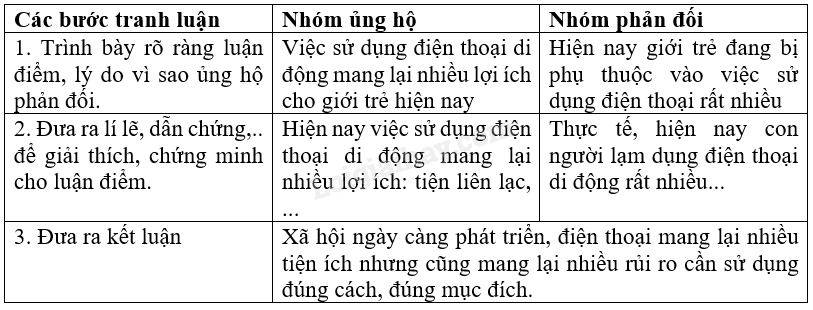 2. Thảo luận nhóm về các lập luận và những điều cần lưu ý khi tranh biện.