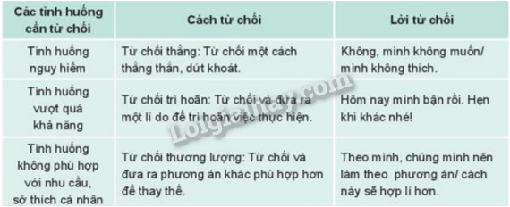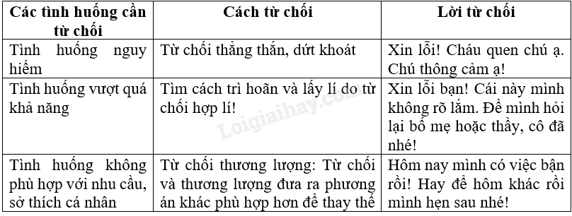 - Chia sẻ cách em đã từ chối và kết quả từ chối.