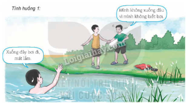- Tình huống 1: Em sẽ từ chối bạn vì em không biết bơi nếu xuống bơi sẽ rất nguy hiểm có thể gây ra việc tai nạn đuối nước.