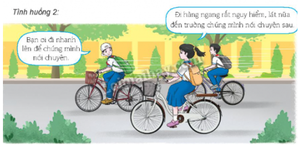 - Tình huống 2: em sẽ từ chối bạn vì chúng ta đang đi trên đường nếu đi dàn hàng ngang sẽ rất nguy hiểm có thể gây ra tai nạn giao thông.