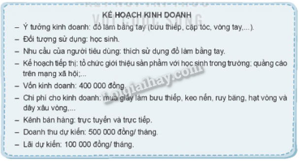 2. Từ những chia sẻ, thảo luận tự lập ra cho bản thân mình một kế hoạch kinh doanh cụ thể