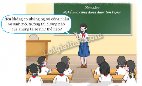 Phương pháp giải: Tìm hiểu về các nghề và tham gia diễn đàn về chủ đề “Nghề nào cũng đáng được tôn trọng”