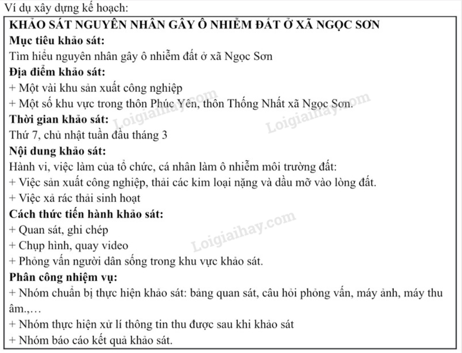 Thảo luận xây dựng kế hoạch khảo sát nguyên nhân gây ô nhiễm môi trường ở địa bàn sinh sống.