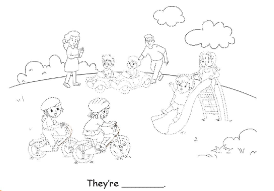 (Kế hoạch: Đồ lại và tô màu bức tranh. Kể cho các bạn của bạn nghe người ta đang làm gì.)