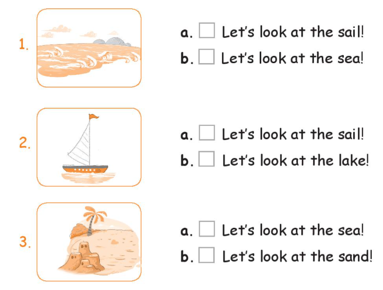 1. a. Let’s look at the sail! (Hãy nhìn chiếc buồm kìa!)