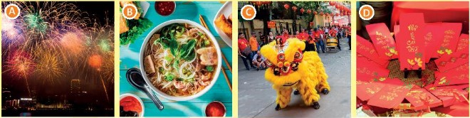 (Chương trình phát thanh nói về những ngày đặc biệt hoặc lễ kỷ niệm. Cần nghe các từ như pháo hoa, phở, múa lân, lì xì.)