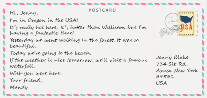 a. Read Mandy’s postcard to her friend talking about her vacation.