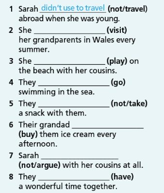 (Hoàn thành câu với used to và động từ trong ngoặc.)
