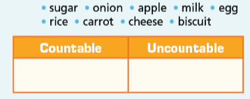 | Countable (Đếm được) | Uncountable (Không đếm được) |