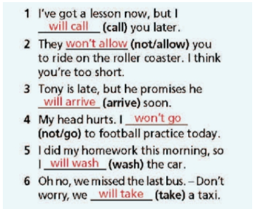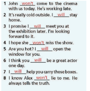 38. Fill in each gap with will or won’t.