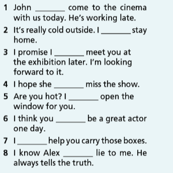 39. Complete the sentences with the correct form of will and the verbs in brackets.