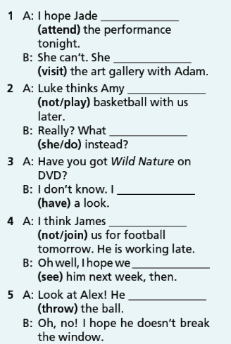 41. Complete the exchanges with the correct form of will or be going to and the verbs in brackets.