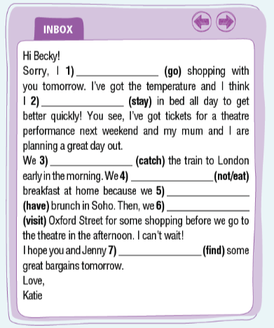 43. Read the email and put the verbs in brackets in the correct future form.
