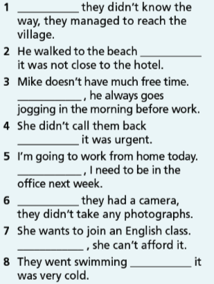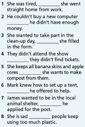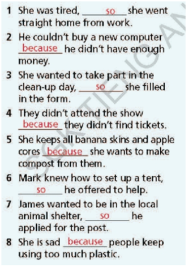 ( Điền vào mỗi khoảng trống với so hoặc because.)