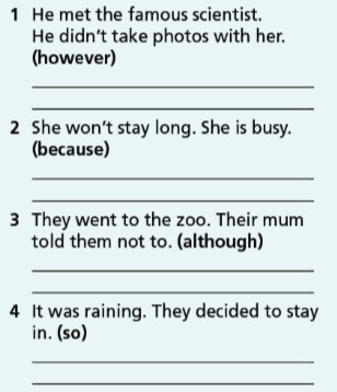 ( Nối các câu bằng cách sử dụng các từ trong ngoặc.)