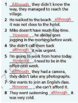 64. Choose the correct answer. 65. Put the verbs in brackets into the Present Simple or the Present Continuous. 66. Put the verbs in brackets into the Past Simple. 67. Put the verbs in brackets into the Future Simple or be going to. 68. Put the verbs in brackets in the correct tense. 69. Fill in each gap with and, or or but. 70. Fill in each gap with so or because. 71. Fill in each gap with although or however. 72. Join the sentences using the words in brackets.