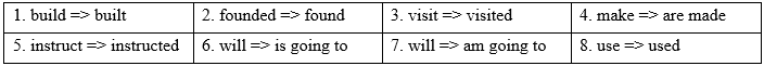- Thì tương lai gần: S + is/ am/ are going to be + V inf (by O)
