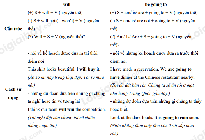 I. Thì tương lai với will và be going to