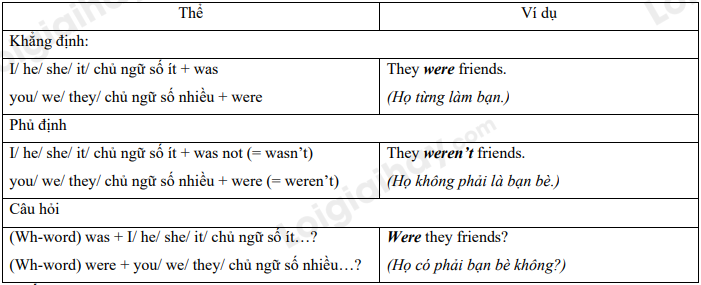 1. Cấu trúc thì quá khứ đơn với động từ “be” (was/were)