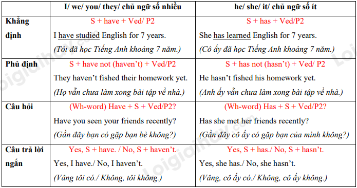 - sự việc vừa mới hoàn thành ở thời điểm quá khứ rất gần (thường dùng với just hoặc recently).
