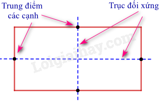 - Hình chữ nhật: Mỗi đường thẳng đi qua trung điểm hai cạnh đối diện là một trục đối xứng của hình chữ nhật.