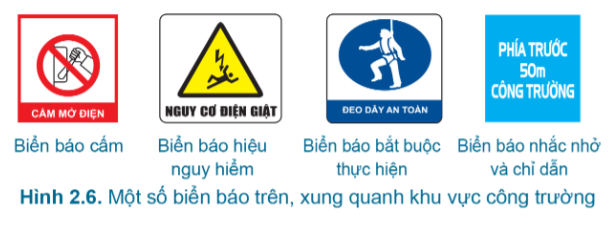 1. Em hãy mô tả đặc điểm của từng loại biển báo trong hình 2.6