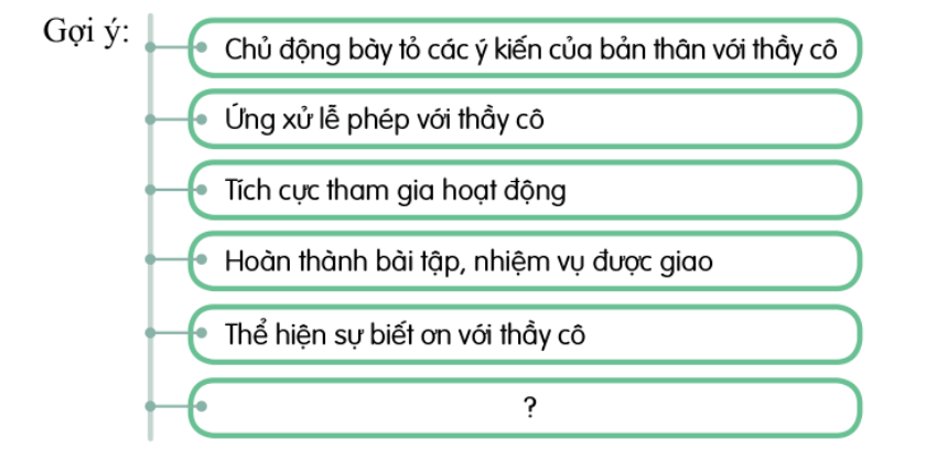 * Chia sẻ về cách ứng xử đúng mực với thầy cô của em và các bạn.