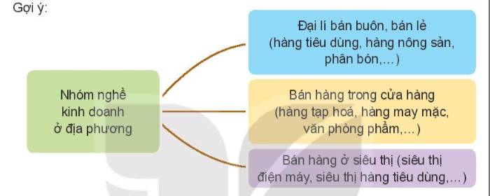 Em dựa vào gợi ý và tìm hiểu về các ngành nghề ở địa phương.