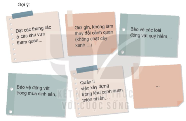 Chia sẻ những việc mà em và các bạn có thể làm để bảo tồn cảnh quan thiên nhiên.